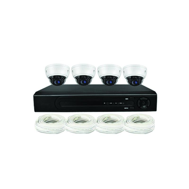 UPTEC VIEW - Pack IP NVR HD 4Ch PoE HDD1T câbles 4dômes 5Mp VF2.8-12