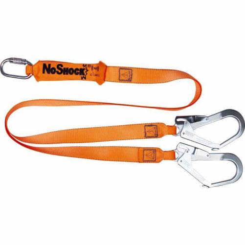 Cette longe à sangle double peut être utilisée pour le maintien des techniciens à leur poste de travail ou comme absorbeur d'énergie qui limitera l'effort transmis à l'utilisateur en cas de chute.