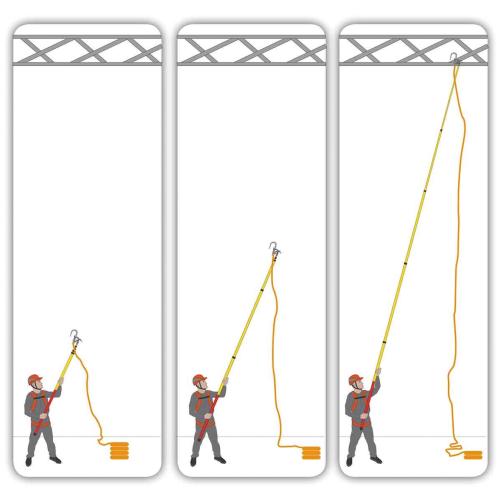 Dans le secteur des télécoms, cette perche permet d'accrocher un lasso au sommet du poteau. Le technicien peut ensuite appliquer une tension pour tester la solidité du poteau et s'assurer qu'il est accessible en toute sécurité.
