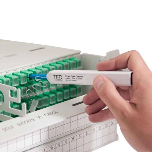 Cet outil permet le nettoyage à sec et la décontamination des faces optiques, que ce soit directement sur la fiche ou à travers un raccord. Il convient aussi bien pour les polissages droits PC que pour les polissages anglés APC.