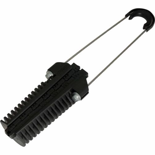 La pince d'ancrage AC56R permet de réaliser l'arrêt de câbles FTTH sur poteau ou façade. Elle accueille les câbles optiques aériens de structure ADSS ronde de Ø 5 à 6mm à isolant rigide, sur des portées jusqu’à 70m. Cette ADSS clamp peut être installée sur tout type de support, console ou traverse avec un trou de fixation de 15mm minimum.