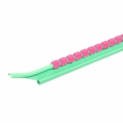 Les cavaliers sont disposés sur leur tige de montage avec des intervalles permettant de les glisser individuellement sur le câble à repérer.