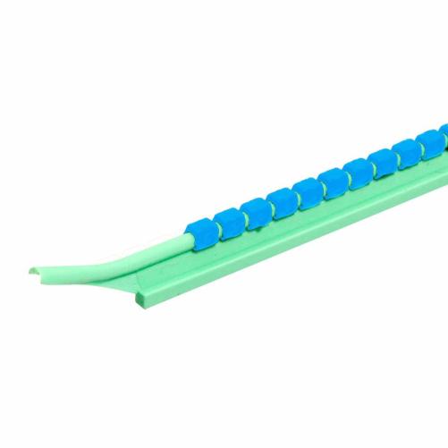 Les cavaliers sont disposés sur leur tige de montage avec des intervalles permettant de les glisser individuellement sur le câble à repérer.