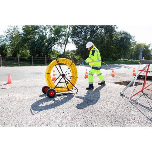 Robuste avec son châssis en acier tubulaire cintré et ses roues tout-terrain, cette aiguille fibre optique 300m est également modulable avec plusieurs positions de travail possibles. La sortie de jonc peut notamment être haute ou basse. La  posture haute permet alors d'utiliser le poids de son corps pour soulager le dos lors du renvoi de l'aiguille dans son dévidoir.