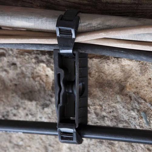 Pose tous les 30cm. Colliers de serrage de largeur 9mm et de longueur adaptée aux diamètres des deux cables à commander séparément. Fabriqué en polyamide résistant aux UV.