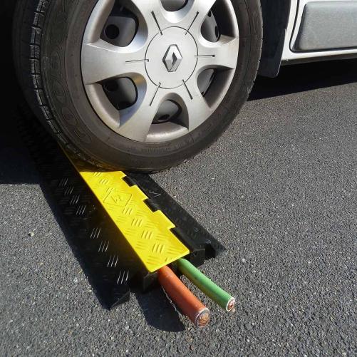 Pour une bonne utilisation du protège-câbles, il est important de rouler dessus à vitesse très réduite.