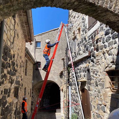 L’échelle Aérostep d’Audinnov apporte enfin aux techniciens réseaux une solution permettant de monter sur les poteaux en toute sécurité lorsque ceux-ci ne sont pas accessibles en nacelles. Grâce à sa conception, cette échelle permet de travailler en contact mais sans appui haut sur le poteau : c’est la seule solution autorisant la montée sur poteau bois en respectant les règles de sécurité.
