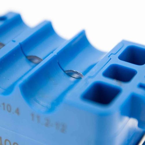 Utilisation est simple et intuitive : il suffit de placer le câble dans le diamètre lui correspondant en fonction de la coupe désirée et de verrouiller l'outil. Tirez ensuite l'outil pour la coupe longitudinale, ou bien tournez le sur l’axe de coupe circulaire. Les fermetures mécaniques garantissent un diamètre constant pendant l'opération. Déverrouillez ensuite l'outil pour extraire le câble : la coupe est faite.