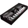 Ce coffret est optimisé pour répondre à un maximum de situations et permettre un gain de temps considérable dans tous les travaux de visserie. Il est fourni dans une mallette pour un rangement propre et peu encombrant. Elle contient 10 douilles de 10 à 19mm avec une couleur spécifique à chaque douille vous permettant de les repérer rapidement, un cliquet 1/2, les poignées de serrage associées ainsi que des têtes de vissage Pozidriv, Torx et 6 pans de plusieurs diamètres pour vous permettre un maximum d'utilisations.