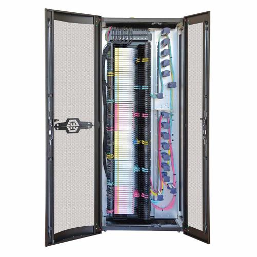 Le rack de 900mm de large est doté d’une gestion intégrée des cordons de brassage sur le côté droit. Il facilite l’installation de châssis LISA standard pour épissurage. Généralement utilisé pour la transmission série 1G et 10G lorsqu’une interface à connecteur LC standard est nécessaire. Il est fourni sous forme d’armoire vide.
