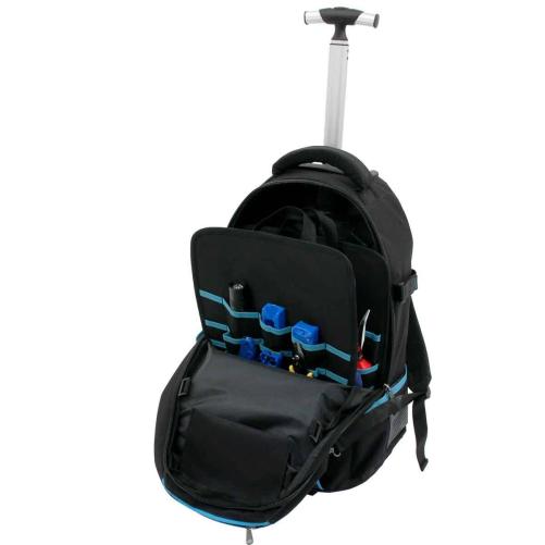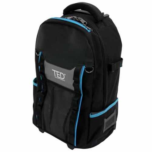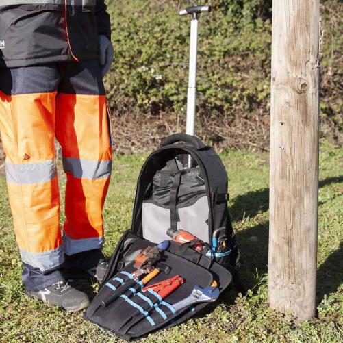 Le sac à dos trolley TED® est un précieux allié pour transporter son matériel professionnel sur les chantiers. Il est pensé pour optimiser le rangement et l'accessibilité. La poche principale peut être ouverte à 90° pour offrir un accès large et rapide aux outils. Le sac contient un rangement amovible d'une dizaine d'emplacements sur chaque face pour l'outillage à main. Ils permettent un rangement ordonné selon les préférences de chaque technicien. Ce rangement amovible peuvent être sorti du sac à dos facilement grâce à des poignées, facilitant l'accès aux outils.