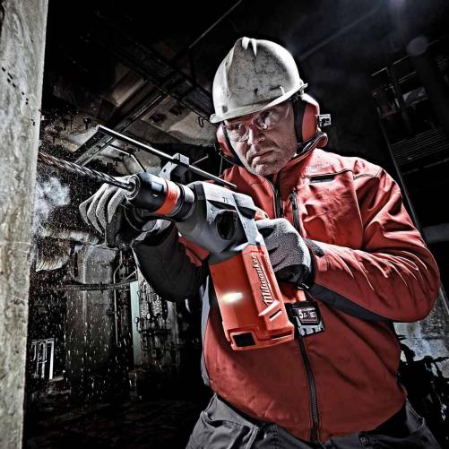 Pour plus de sécurité de l'utilisateur, le système AUTOSTOP permet au perforateur, en cas de bloquage, de s'arreêter instantannément. Le perforateur est compatible avec toutes les batteries et accessoires de la gamme M18, incluant l'extracteur de poussière M18™ CDE.