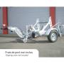 Remorque dérouleuse routière avec frein pour le transport et le déroulage des tourets de câble jusqu'au type F. De conception simple et robuste son châssis est en acier galvanisé à chaud. Le chargement et déchargement des tourets est assisté par un balancier hydraulique (à pompe manuelle).