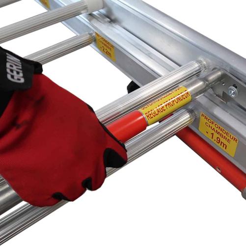Ce dispositif est utilisé afin d'accéder facilement aux chambres souterraines, même les plus profondes. À l'aide de 2 plans de 8 barreaux chacun, il permet des accès allant jusqu'à 4 mètres. En aluminium et avec des échelons antidérapants remplaçables, il bénéficie d'une excellente durée de vie. Des compensateurs de niveaux isolés sont présents pour adapter le dispositif aux particularités des fonds des chambres souterraines. Une poignée de manutention offre une manipulation facile.