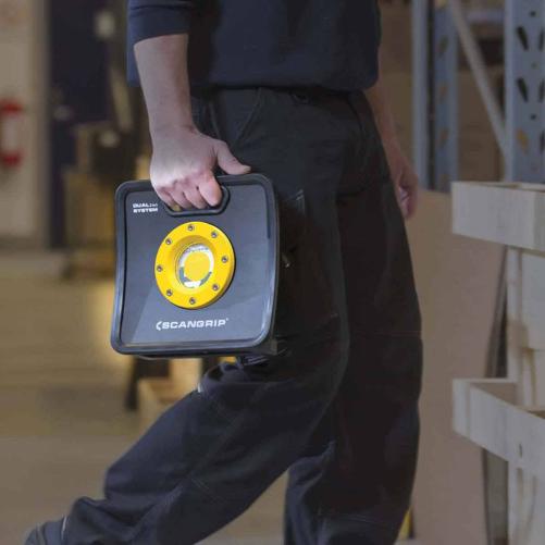 Ce projecteur SCANGRIP est très utile sur les chantiers. À l'aide de sa puissance de 4000 lumens, il offre une luminosité incomparable. Sa technologie LED COB fournit un éclairage proche de la lumière du jour permettant de restituer fidèlement les couleurs sur le terrain, idéal lors de manipulations de câbles ou autres. Son corps en aluminium moulé sous pression resistant aux coups et chocs violent ainsi que son étanchéité IP65 lui offrent une excellente durée de vie, même sur les chantiers à risque. Enfin, sa poignée de transport le rend facile à transporter.