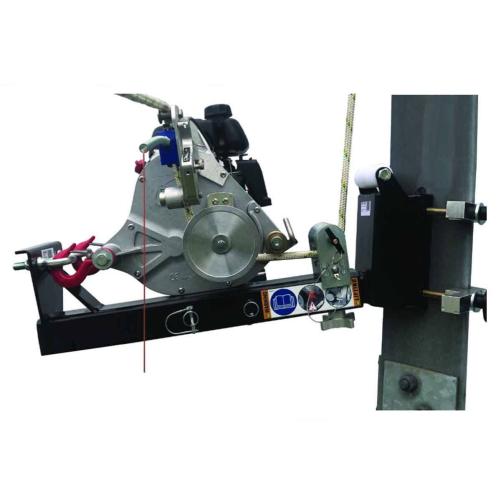 Le support est muni d’une tablette ajustable pour l’ancrage stable et robuste du treuil et d’une poulie en forme de « V » montée sur roulement à billes. Cette poulie sert à rediriger la corde à la verticale avec un angle permettant d’atteindre les sections éloignées du centre.