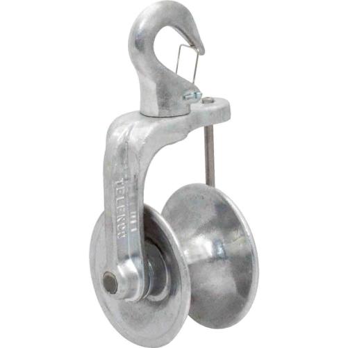 Destinée au déroulage des câbles cuivre et fibre optique sur courte portées. Compacte et résistante, cette poulie possède un réa en aluminium ainsi qu'un crochet tournant et un linguet de sécurité.