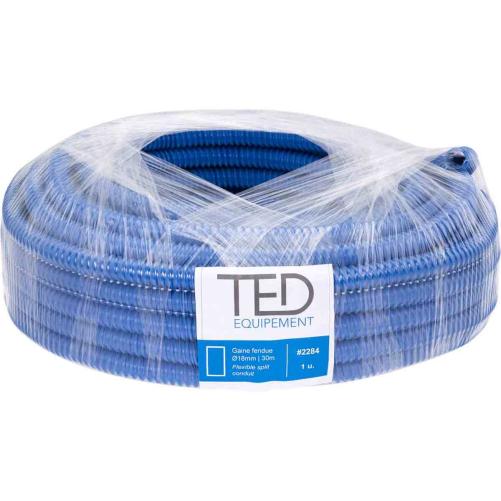 La gaine annelée PVC flexible et fendue est utilisée pour garantir la protection et le repérage des câbles de fibre optique et des faisceaux. La protection des câbles est assurée par la structure en spirale renforcée de la gaine. Cela protège contre l'écrasement et les chocs lors des interventions en chambre.