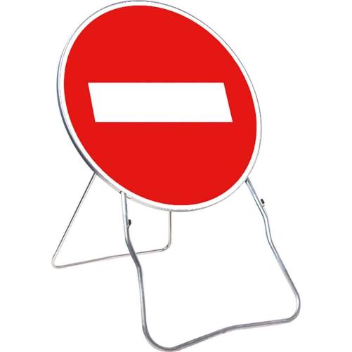 Panneau temporaire pour indiquer un sens interdit provisoire. Robuste, il est conçu en acier galvanisé et offre un rapport stabilité/poids optimal (tests réalisés avec les lests les plus légers du marché). Il possède un poignée de transport extrêmement résistante qui supporte un poids de plusieurs tonnes.
