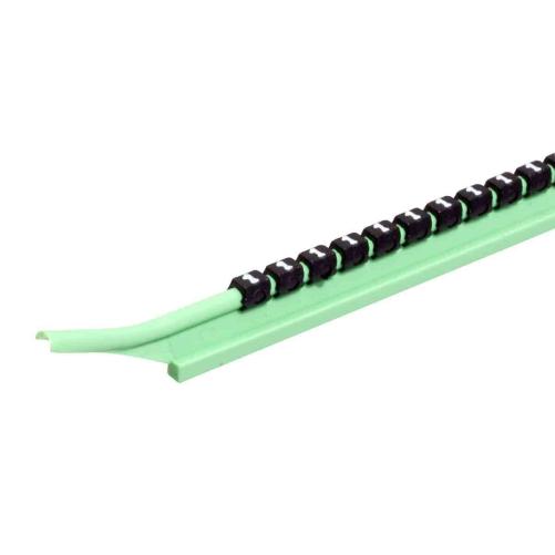 Les cavaliers sont disposés sur leur tige de montage avec des intervalles permettant de les glisser individuellement sur le câble à repérer.