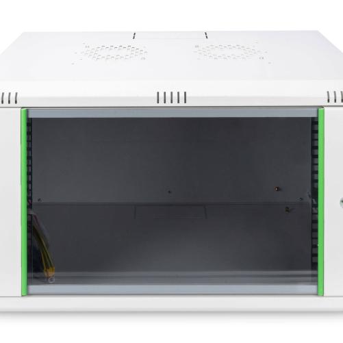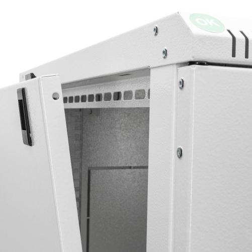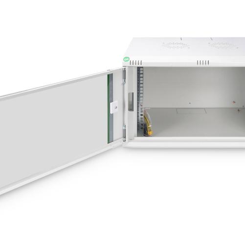 Grâce à ses panneaux latéraux amovibles, le répartiteur réseau offre une très bonne accessibilité pour la maintenance et l'installation des composants informatiques intégrés, tels que le panneau de brassage, le commutateur ou les multiprises. Si la ventilation passive de l'armoire murale n'est pas suffisante pour des appareils tels que routeurs, NAS, UPS, PBX, un module de ventilation proposé séparément peut être installé dans le toit de l'armoire de données. La charnière de la porte avant verrouillable peut être montée à droite ou à gauche selon les besoins.