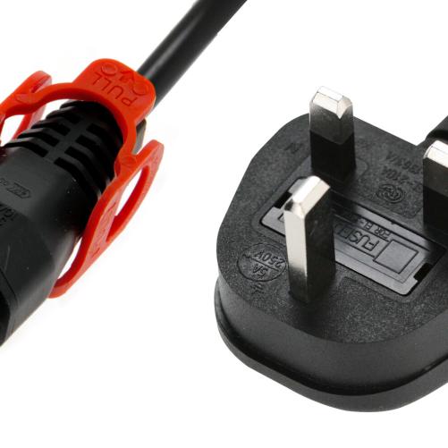 IEC Lock - Cordon secteur 2P+T UK vers C13 avec cage - 3m - Noir