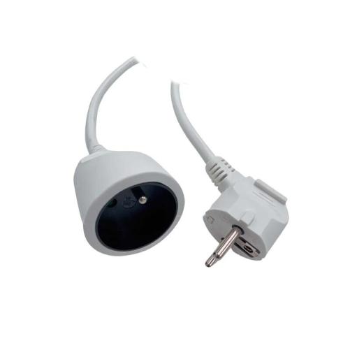Rallonge secteur 2P+T Mâle/Femelle - Coudé/Droit - Blanc - 10m