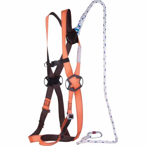 Ce kit harnais antichute prêt à l'emploi est équipé d'un harnais avec 1 point d'accroche et d'une longe en corde toronnée inamovible. Celle-ci permet d'assurer la sécurité des techniciens par un maintien fiable.
