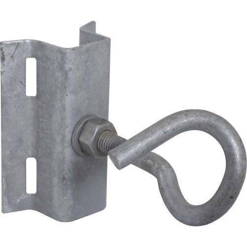 Le boulon queue de cochon 12 x 50mm équipé d'écrou et contre-écrou se visse sur un étrier double et autorise l'accrochage direct des dispositifs de suspension à coquille aluminium ou spiralés. Il se fixe sur poteau bois ou béton grâce à des feuillards de 20mm.