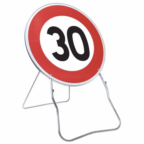 Ce panneau de chantier indique à l'automobiliste la vitesse maximale à adopter sur la voie. Grâce à sa matière en acier galvanisé et à sa poignée de transport, ce panneau est solide et léger, et se déploye facilement. Très pratique pour forcer le traffic à rouler lentement.