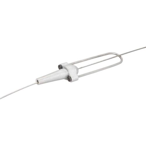 Le filin ou le hauban s'insèrent par l'extrémité resserrée du corps. Le serrage est automatique. Le réglage est manuel.