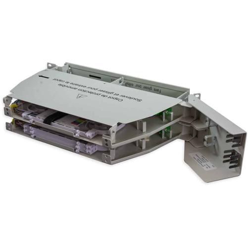 Tiroirs pivotants spécifiquement conçus pour le brassage des fibres optiques dans les réseaux d'accès FTTH. Principalement destinés aux armoires de rue, ils peuvent également être installés en baie ou en châssis.