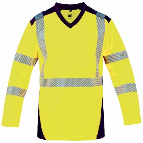Tee-shirt haute visibilité ML jaune/bleu marine Cl.3 T2S T.L