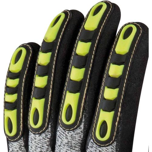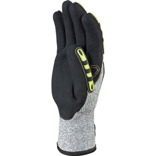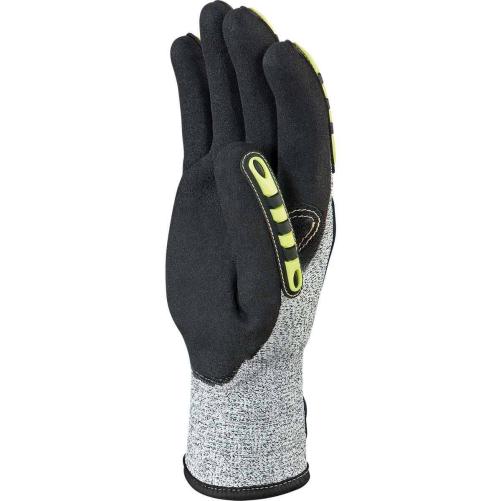 Gants anticoupure déstonés à protéger lesmains des techniciens et ingénieurs de terrain des risques mécaniques lors de leurs manipulations sur les chantiers. Ils bénéficient de renforts sur le dos ainsi que sur les doigts pour une meilleure défense contre les impacts et pincements, protégeant ainsi les articulations. Les coutures en Kevlar et le renfort entre le pouce et l'index améliorent la robustesse des gants pour une durée de vie accrue. Une première enduction en nitrile lisse sur la paume et le bout des doigts les rend imperméables aux huiles et hydrocarbures. Une seconde enduction en nitrile mousse leur procure une bonne adhérence et permet une bonne prise en mains des objets. Les manchettes de 8cm prolongent les gants permettent d'englober les poignets pour leur offrir également une protection contre les coupures.
