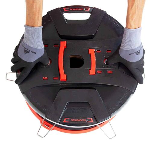 Le dérouleur de câble X Board est un appareil universel pour le déroulage des tourets avec tous les types de câbles et tuyaux. Supportant des charges importantes, le dérouleur X board est adapté aux tourets même endommagés. Ses 12 pieds caoutchoutés garantissent une position non-glissante et sécuritaire du dérouleur lors de son utilisation.