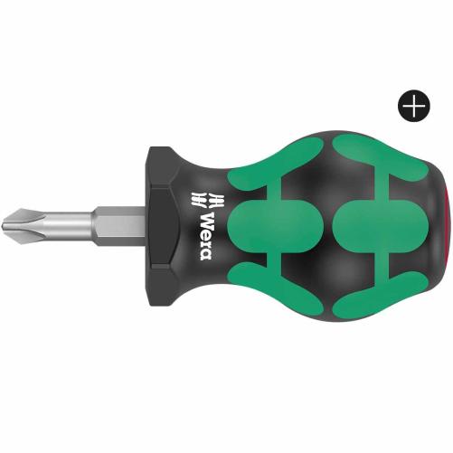 Tournevis boule court WERA pour vis avec empreinte Phillips, sa forme compacte lui permet de travailler dans des endroits exigus difficiles d'accès. La forme octogonale de son manche lui évite de rouler une fois posé à plat. En forme de boule, son manche ergonomique offre une prise en main efficace pour forcer sur les serrages difficiles.