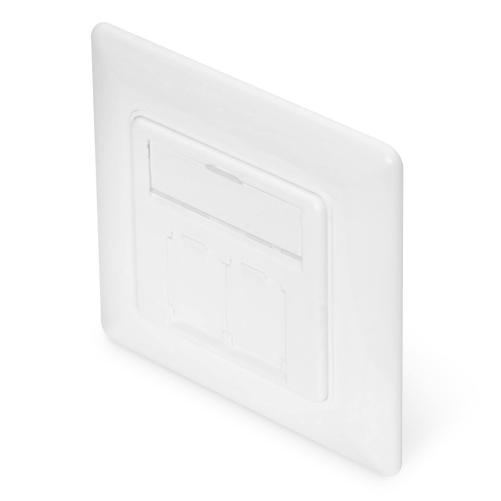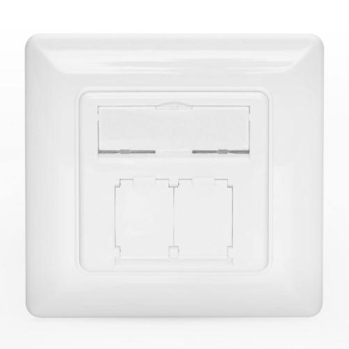 Plastron 45x45 2 ports RJ45 avec plaque de finition 80x80mm, Blanc