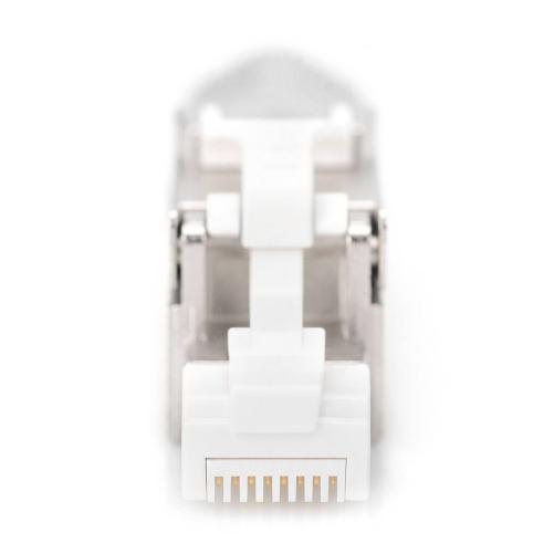 Le connecteur de terrain CAT8.l blindé de DIGITUS permet un raccordement sans outil et une connexion stable et durable grâce à son boitier métallique robuste.