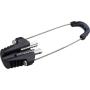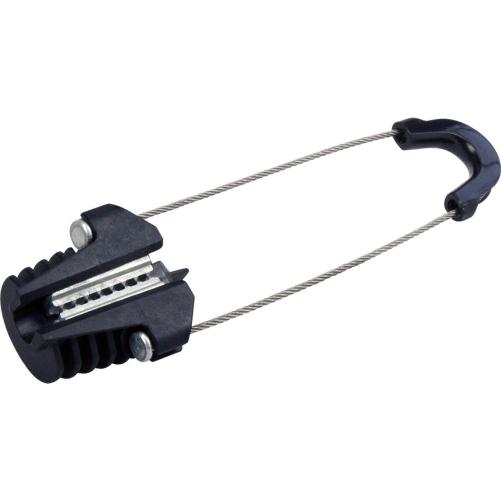 Ces pinces d'ancrage ont été spécifiquement développées pour l'arrêt des câbles cuivre figure-8 utilisés par ORANGE. Le serrage conique automatique ne nécessite aucun outil de pose ni aucune préparation préalable du câble, ce qui réduit considérablement les temps de mise en oeuvre. Au moment du serrage, les mâchoires perforent l'isolant du porteur pour s'ancrer sur l'âme acier.