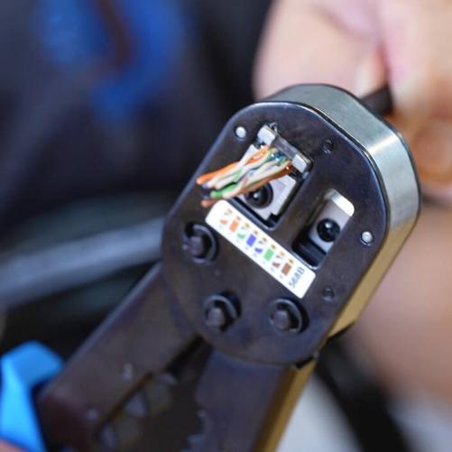 Pince à sertir pour les connection cuivre RJ45 et RJ11/12. Elle dispose de sertissage supplémentaire pour permettre l'utilisation sur les queues de connecteur blindées. La pince est idéale pour travailler avec les câbles CAT3, CAT5, CAT5e, CAT6 et CAT6A. La pince offre un résultat propre et précis sans effort grace à sa poignée à effet de levier.