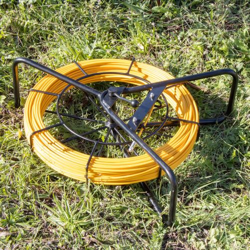 Renforcé, le nouveau châssis offre une stabilité accrue tout en restant léger. Il permet toujours une utilisation en position verticale ou horizontale. La position horizontale, est particulièrement adaptée pour le travail sur sols instables ou glissants ( terre, graviers, chaussée, ...) et en bord de chambre. Le jonc en fibre de verre qualité premium allie résistance à la traction et élasticité, pour un aiguillage/tirage aisé de câbles fibre optique ou autres, même dans les conduites les plus difficiles.