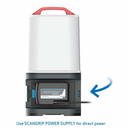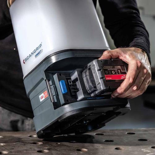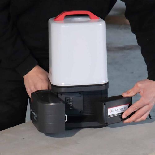 Le projecteur est compatible avec le système de batteries METABO/CAS 18V ainsi que toutes les autres batteries 18V/20V des grandes marques d’outillages électroportatif en utilisant le connecteur SCANGRIP.