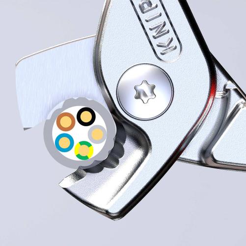 Le coupe-câbles StepCut® par Knipex est un outil de haute qualité conçu pour couper efficacement les câbles en cuivre et en aluminium jusqu'à un diamètre de Ø 15 mm . L'innovation Stepcut dôte ce produit de de cannelures qui coupent les fils les uns après les autres ; la coupe est jusqu'à 40 % plus facile qu'avec des coupe-câbles standards de la même longueur. Doté de lames trempées par induction, cet outil offre une coupe précise et propre, assurant des connexions électriques fiables et sécurisées.