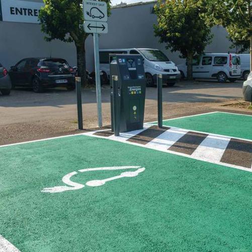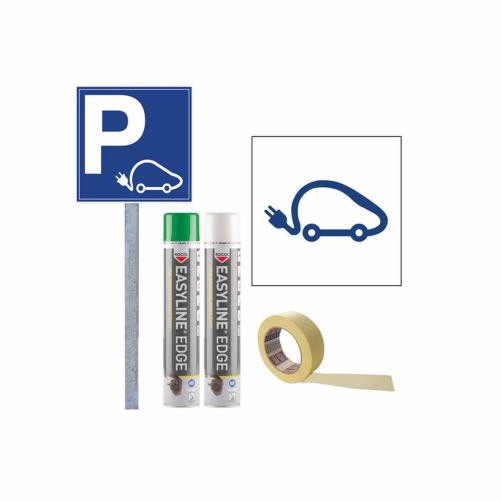 Kit complet pour le signalement des zones de stationnement pour l'installation de bornes de recharges véhicules électriques sur parkings publics, copropriétés ou entreprises.