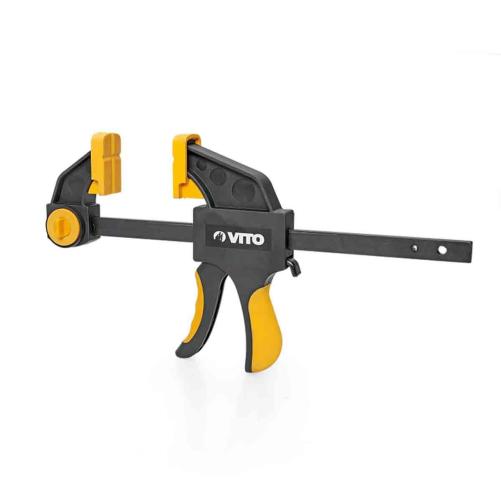 Ce serre-joints se manipule d'une seule main; l'ergonomie optimisée de sa poignée rend sa prise en main confortable en toute situation.