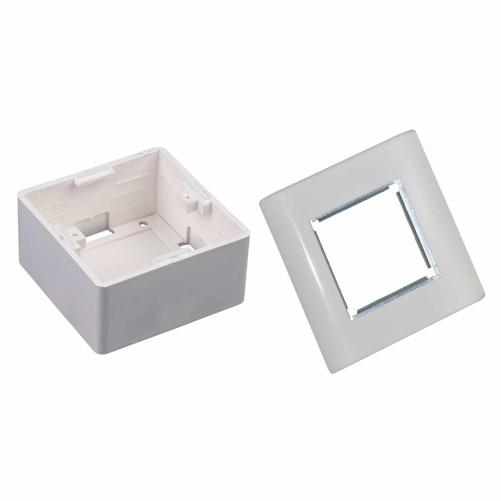 Boîtier en saillie avec enjoliveur et grille permettant l'intégration de plastrons au format 45x45.