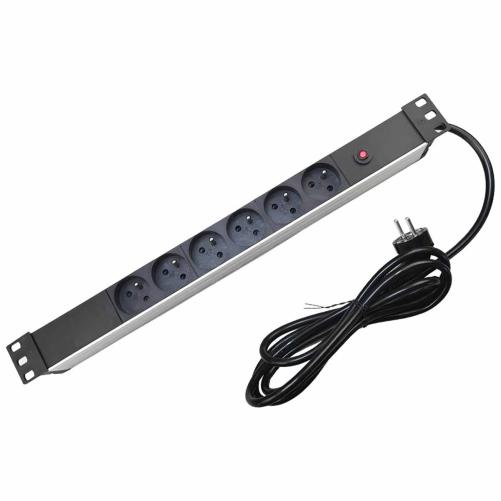 PDU 19" 1U sans inerrupteur. Dotée de 6 prises et d'un cordon de 3 mètres, cette multiprise est adaptée aux panneau de brassage et peut se fixer facilement dans une baie de brassage ou un coffret 19" grace à ses fixations orientables.