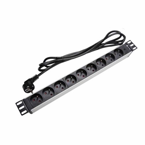 PDU 19" 1U. Dotée de 9 prise et d'un cordon de 3 mètres et qu'un voyant lumineux, cette multiprise est adaptée aux panneau de brassage et peut se fixer facilement grace à ses fixations orientables.