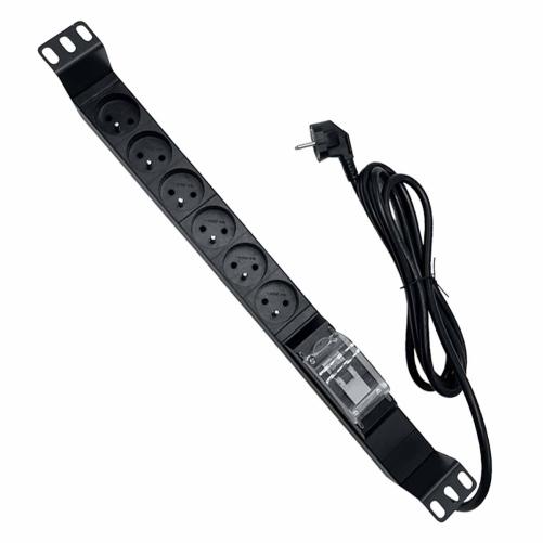 PDU 19" 1U. Dotée de 6 prise, d'un disjonteur différentiel 16A 30 mA et d'un cordon de 2,5 mètres, cette multiprise est adaptée aux panneau de brassage et peut se fixer facilement grace à ses fixations orientables.