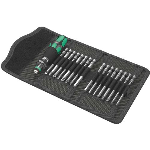 Cette trousse à outils se compose de 17 pièces dont 1 tournevis porte-embouts 816 R Kraftform avec un mandrin à serrage rapide Rapidaptor pour garantir à l'utilisateur un maximum de confort et d'efficacité. La combinaison manche/lames interchangeables autorise un échange très rapide de la lame désirée et offre de multiples applications. Grâce au rangement et au transport dans un robuste étui de ceinture, l'outil est toujours à portée de main.